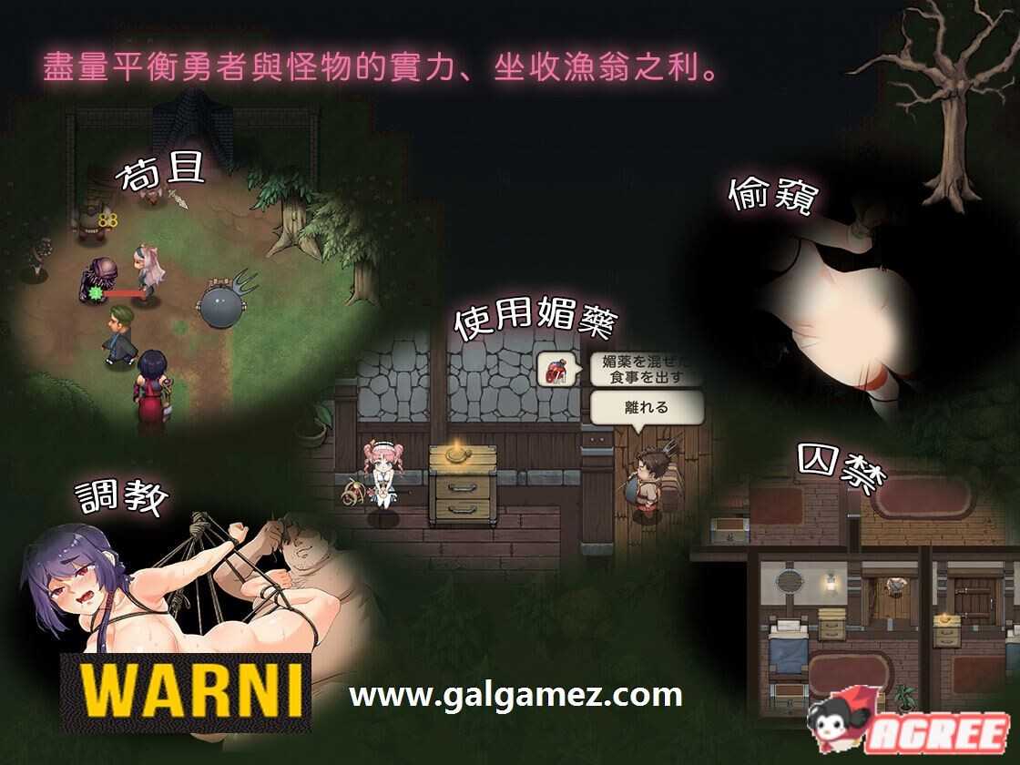 在战斗中也可以“帮助”受伤的女勇者。 将她们软禁起来,给她们吃混入了奇怪药物的食物。监禁她们、教育她们,让她们成为你忠诚的奴仆。