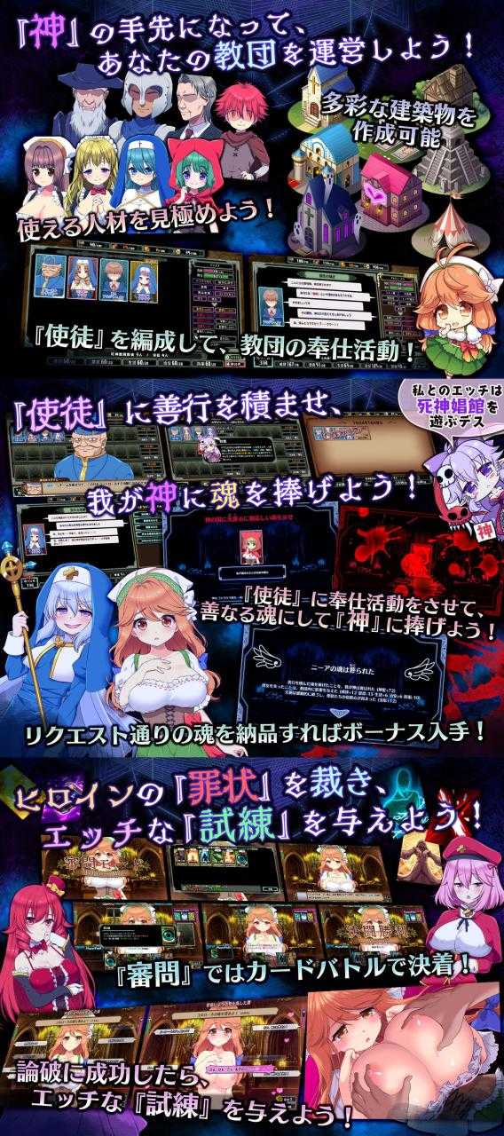 わがままで大雑把な『神』はノルマを課してきます。ノルマを満たさなければ教団は発展できません。上手く教団を運営していきましょう。