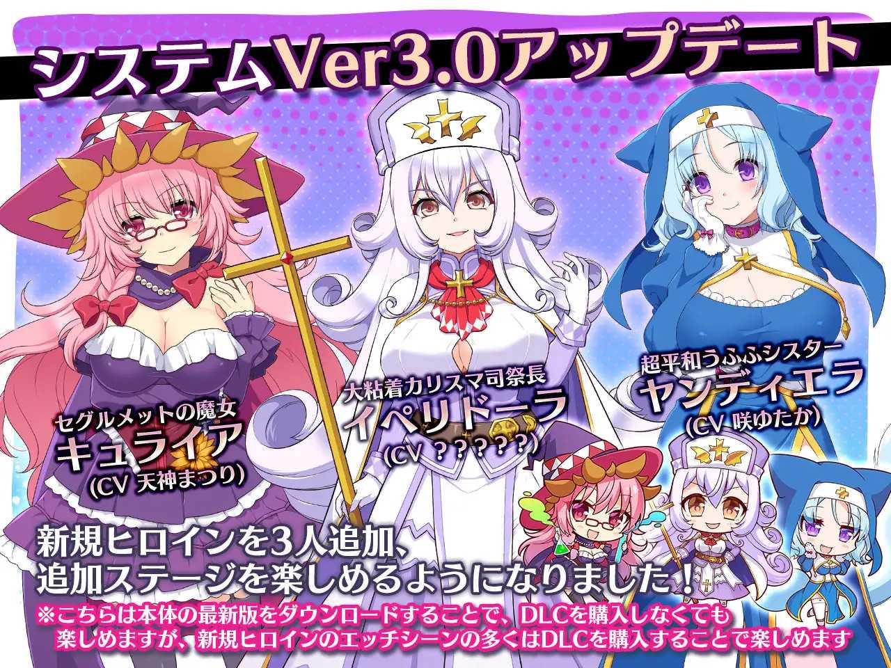 しかし、ヒロインの魂は最初は未熟なまま。『聖人』の力によって浄化し、『祝福』を受ける必要があります。彼女らに信徒の前で祝福(要はエッチすることです)して、彼女らの魂を磨き上げましょう。