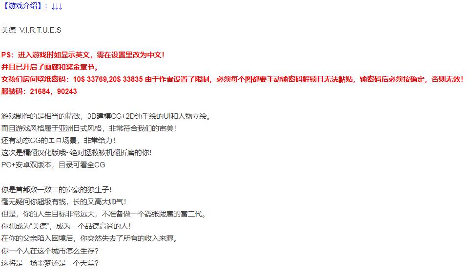 【伦理SLG/汉化】美德-妈妈扮演母狗v17+外传x10【PC+安卓】V.I.R.T.U【12G/XN】 2023-12-20 游戏资源 840 [图片预览]:[解压密码]:meiya2023[下载地址]:http://www.xunniu-pan.com/file-4395649.html 下载APP,有更多精彩 打开手机浏览器,扫描二维码下载 阅光宝盒免费在线视频小说,点击查看 0 游戏资源