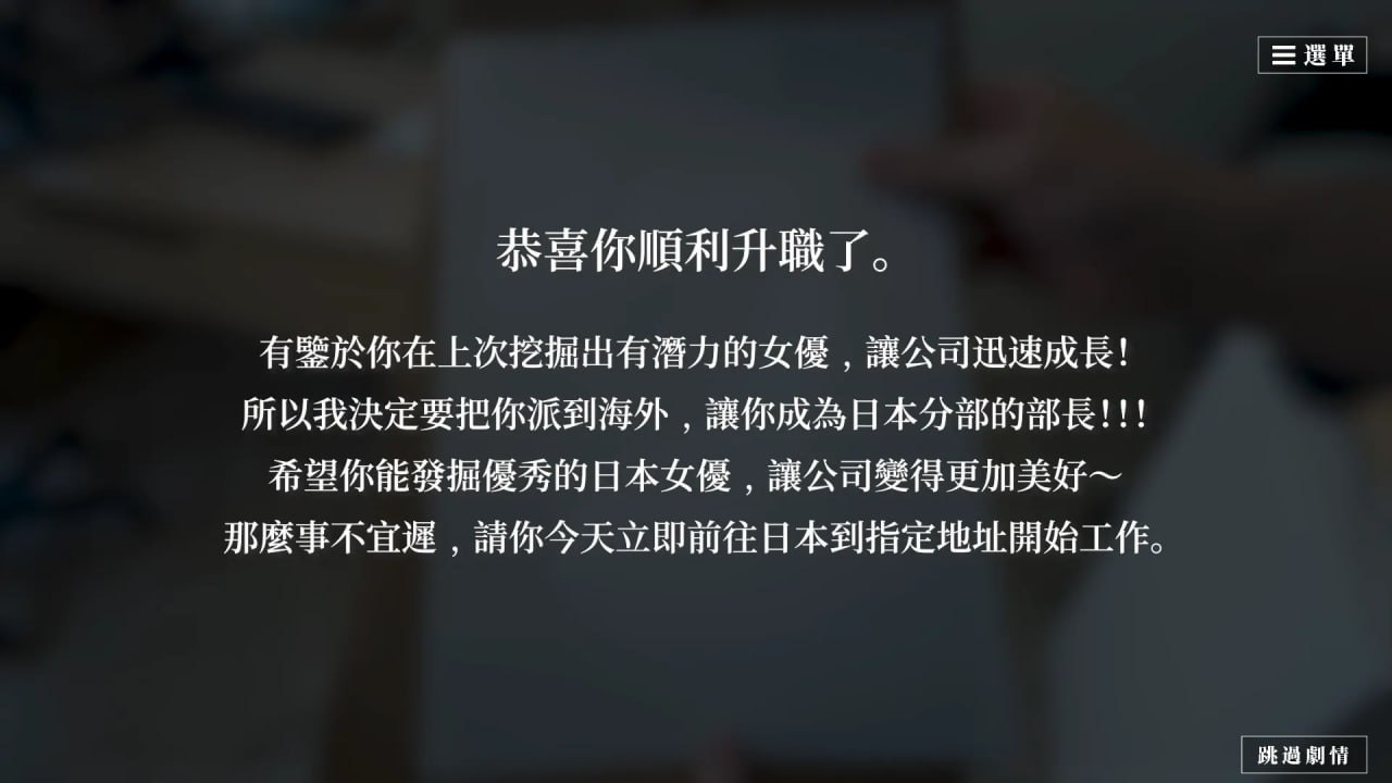 有鑒於面試官先前挖掘出有潛力的女優,公司迅速成長!老闆決定將你外派至海外,成為日本分部部長!到了日本的第一天卻馬上被神秘組織M盯上,成為了實驗對象…《這個面試有點硬》玩家不再是菜鳥面試官,成功面試66位女模的你,已經脫胎換骨,收到老闆的任務,出發日本,卻遇到了邪惡組織「M」!這次你是否能不忘初衷達成任務,或是深陷其中淪為性愛的俘虜!?