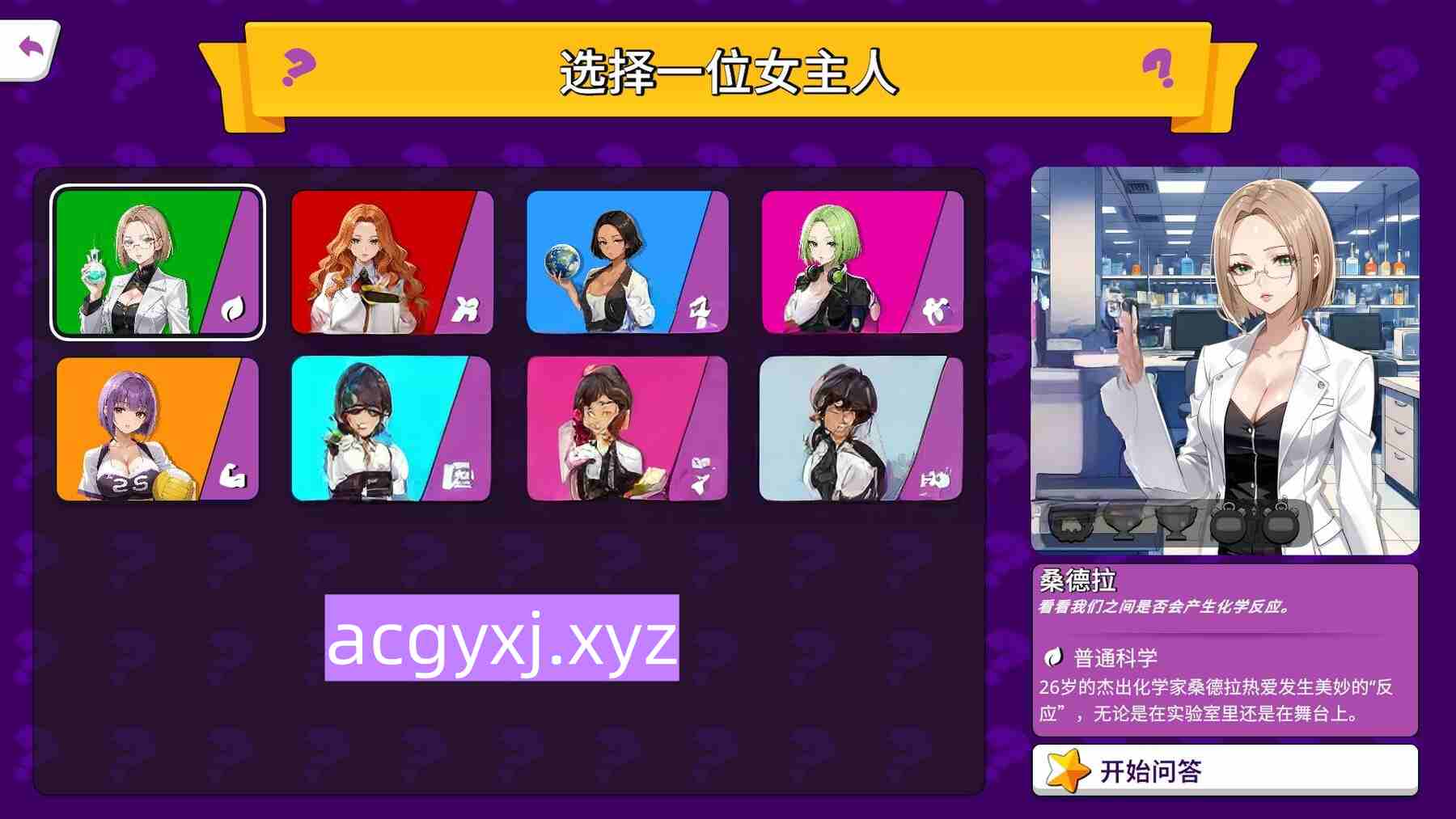 游戏以魅力四射的主人为特色,每个主人都有独特的个性和专门的测验类别。